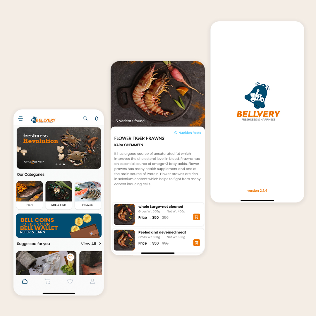 The result of this collaboration was the Bellvery app—an innovative e-commerce platform catering to both business-to-business and business-to-consumer transactions. This user-friendly app revolutionized the seafood shopping experience, offering customers in Calicut the convenience of ordering fresh fish, chicken, meat, and dry fish online, directly from the source.